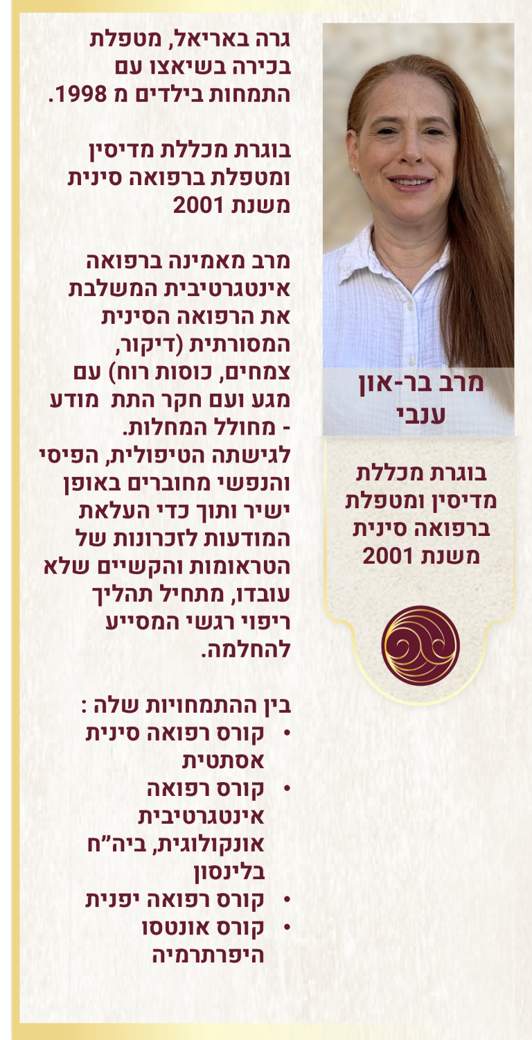 - הטיפולים משלבים איזון גוף, נפש ואנרגיה.
